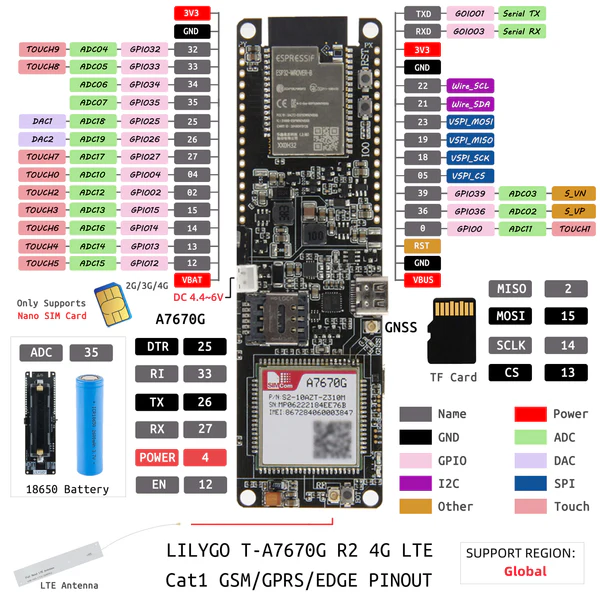 Getting Started with LILYGO T-A7670G: ESP32 4G LTE & GPS Setup Guide