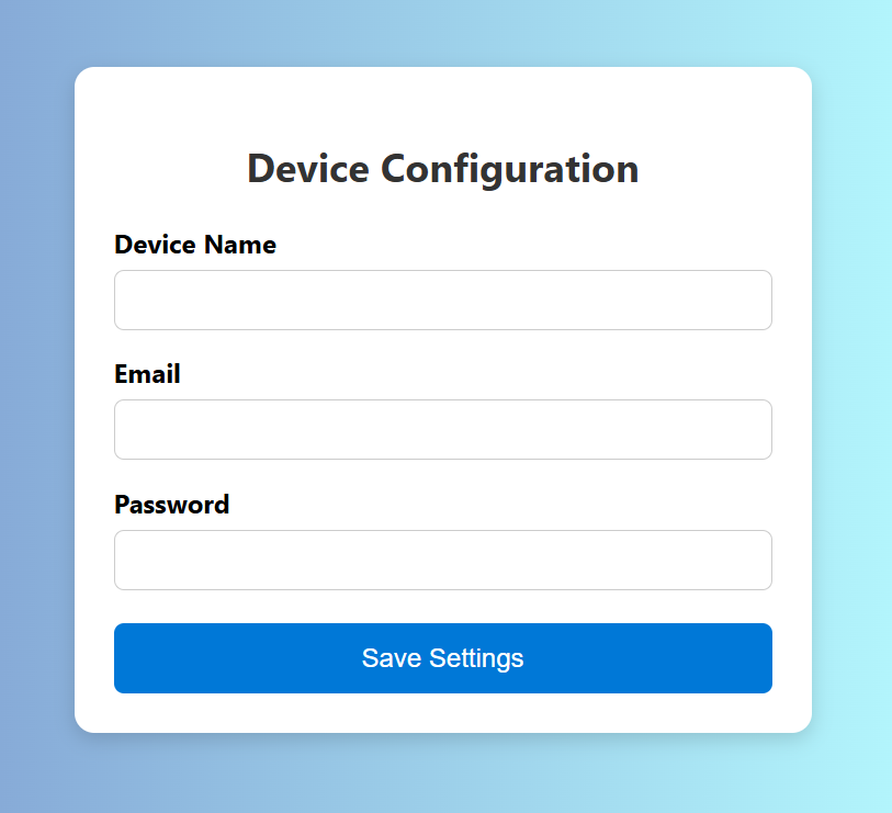 WiFi.h(For networking)WebServer.h(To serve the HTML page)Preferences.h(To save data to flash memory)