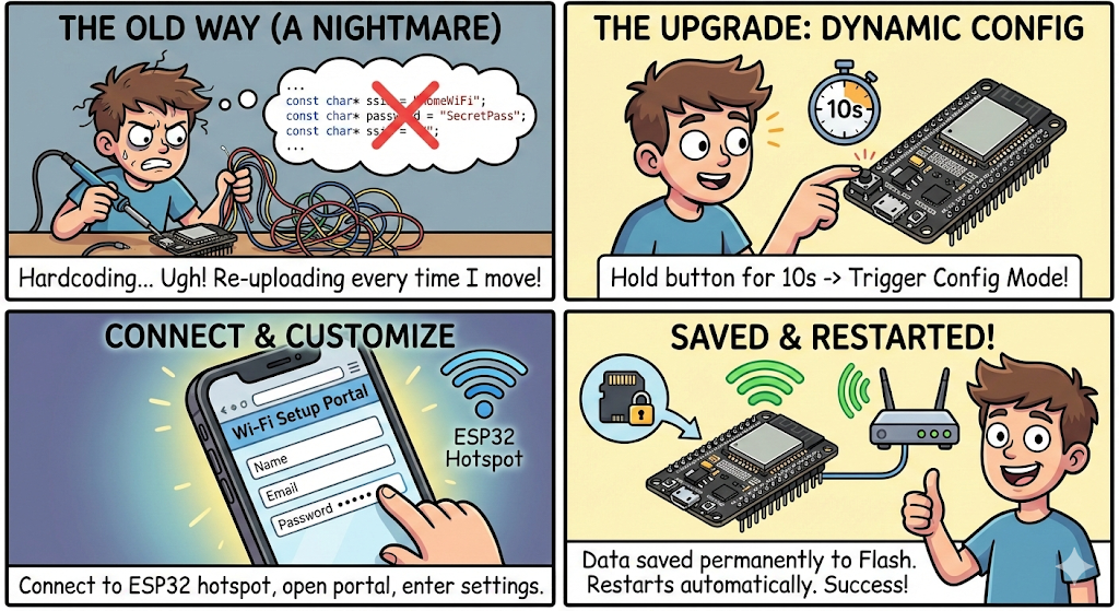 Stop Hardcoding Credentials! Build a Dynamic Config Portal for ESP32
