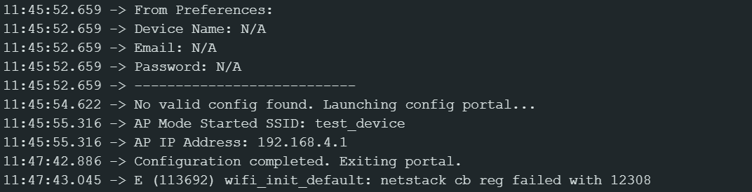 - Trigger Config: Hold the button on GPIO 23 for 10 seconds until you see "Starting Portal...". If no saved config data it will open config portal automatically for first time.