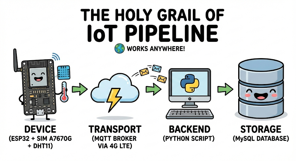 In this guide, we are building the "Holy Grail" of IoT projects: a complete data pipeline that works anywhere in the world.