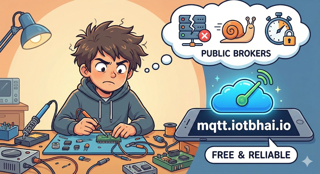 I have launched a dedicated, free-to-use public MQTT broker for the developer community! Whether you are testing an ESP32 or building a web dashboard, click here for the connection details, ports, and code examples to get started with mqtt.iotbhai.io.