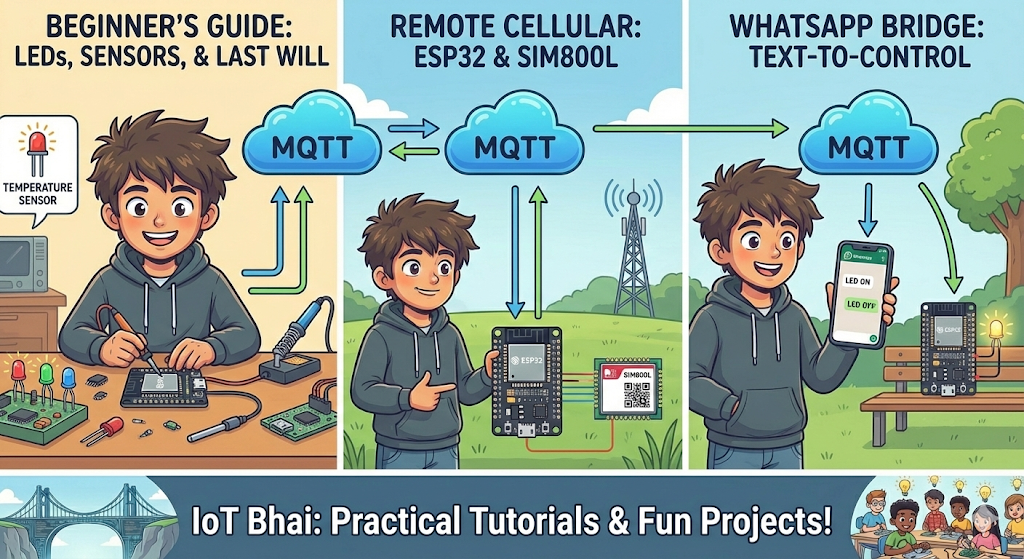 Now that you have the broker, what should you build? I have written three complete, step-by-step guides that you can test using mqtt.iotbhai.io right now.