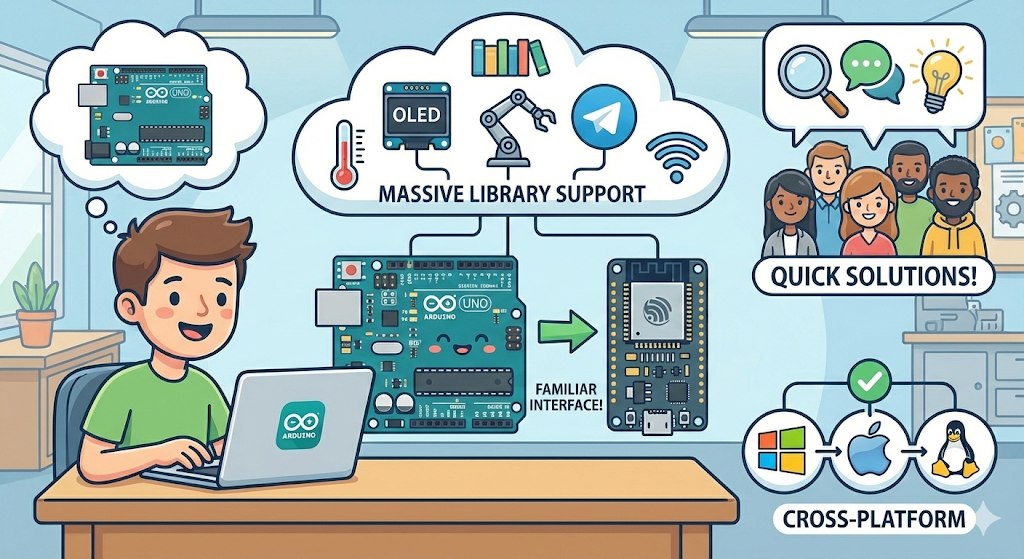 While professional engineers often use Espressif's native tools, the Arduino IDE remains the best choice for hobbyists, makers, and rapid prototyping. Here is why:
