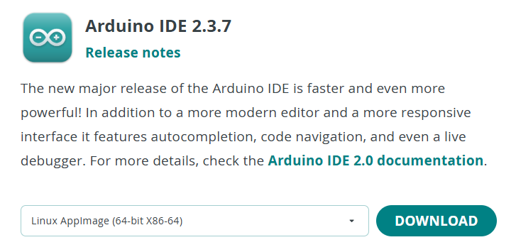 Go to the Arduino Software page and download the Linux AppImage 64 bits (x86-64).