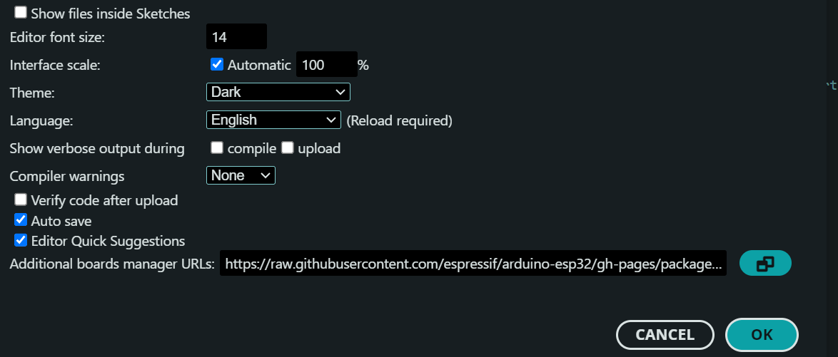 By default, Arduino IDE only knows about standard Arduino boards. We need to tell it where to find the ESP32 definitions.