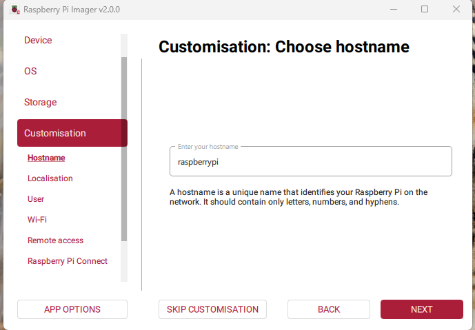 [INSERT SCREENSHOT: The Raspberry Pi Imager OS Customisation Menu]