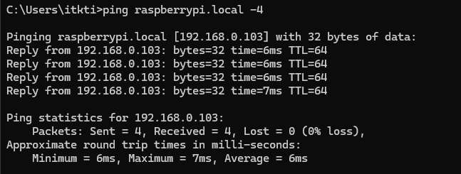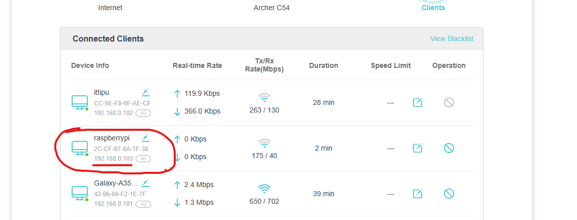 If you have access to your home router's administration page (usually 192.168.0.1 or 192.168.1.1), log in and look for the "Connected Devices" or "DHCP Client List." Look for a device named raspberrypi (or the hostname you set earlier). Note down the IP address next to it (e.g., 192.168.0.105).