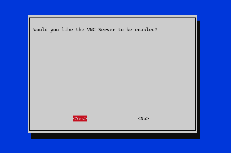 - When asked "Would you like the VNC Server to be enabled?", select <Yes> and press Enter.