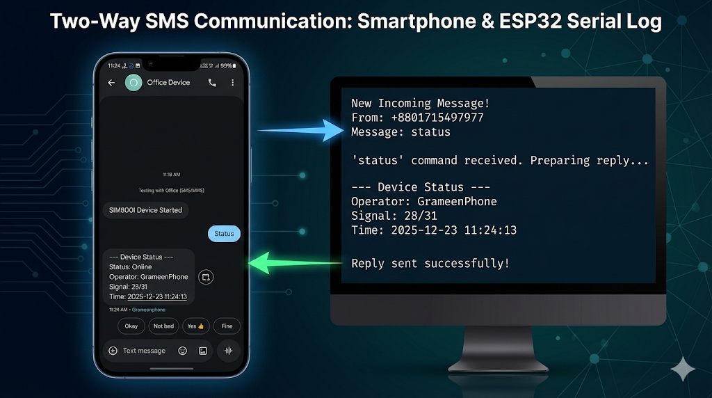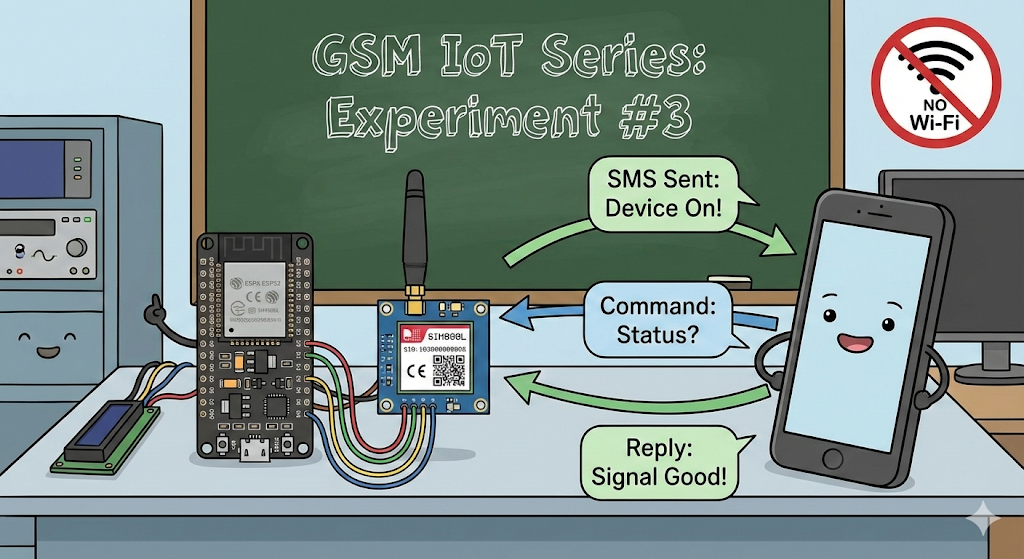 Wi-Fi isn't always an option. In this tutorial, we take our GSM skills to the next level by building a two-way communication system. You'll learn how to make your ESP32 text you automatically and how to query its status from anywhere in the world using simple SMS commands.