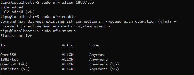 sudo systemctl enable mosquitto # Ensures it starts on boot- Open the Firewall: Even if Mosquitto is listening, your server's firewall