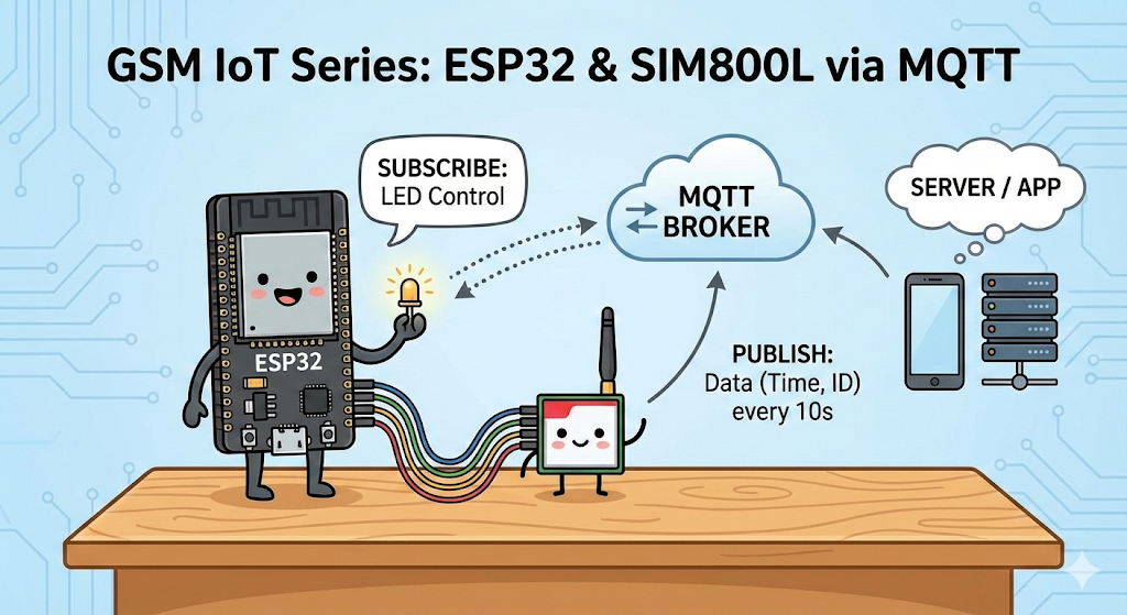 Welcome back to the GSM IoT Series! In today’s tutorial, we are taking a significant leap forward. We aren't just sending simple SMS messages anymore; we are connecting our ESP32 to the internet using the SIM800L GSM module to communicate via MQTT.
